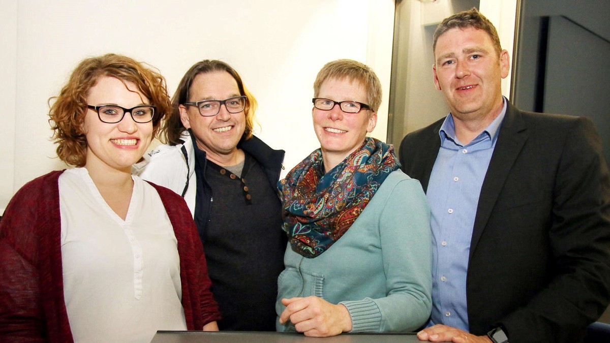 Dank des Zuschlags für die Malteser Werke kann die Gemeinde auf Kontinuität setzen, eine wichtige Nachricht auch für ehrenamtliche Helfer wie Uwe Beißner vom Runden Tisch Asyl (Zweiter von links), hier mit Maren Gockel (links), Carla Bieling und David Strube von den Maltesern.